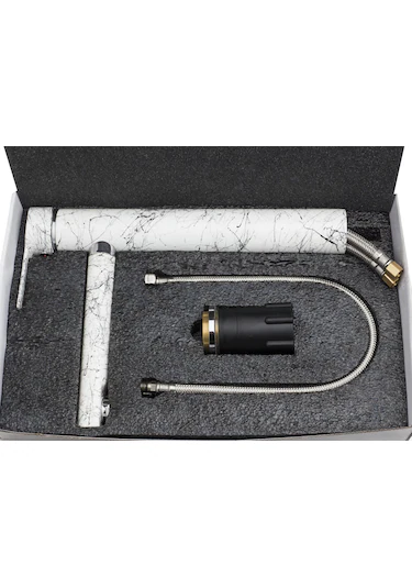 Çanak Beyaz Mermer Desenli Krom Parçalı Evye Bataryası